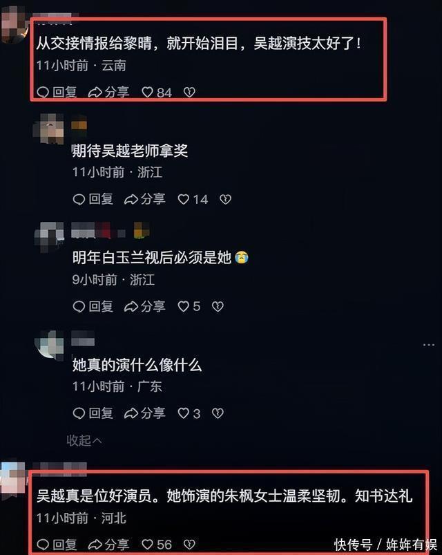 大家热评道:“吴越可以拿奖了,演的很好。”