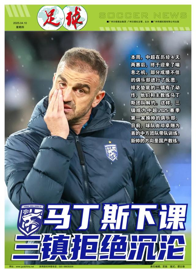 记者鲁蜜报道 本周,中超在历经4天两赛后,终于迎来了喘息之机,部分成绩不佳的俱乐部进行了反思。排名垫底的三镇有了动作,他们和主教练马丁斯团队解约。这样,三镇成为中超2025赛季第一家换帅的俱乐部,目前,球队由邓卓翔为首的中方团队带队训练,新帅的方向是国产教练。